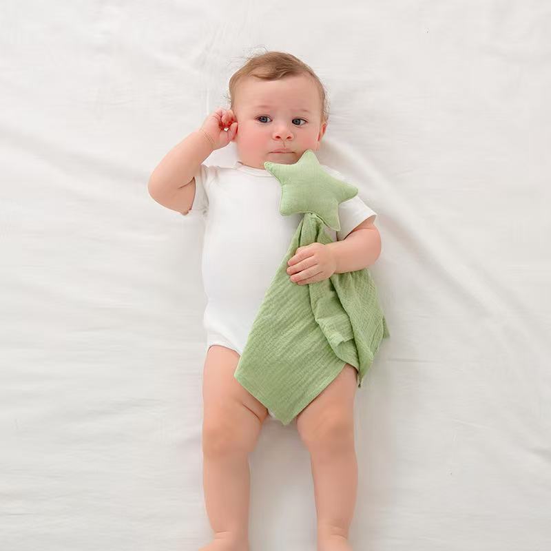 Tuto de apego Muselina 100% de algodón suave y liviano, con forma de Estrella. El tuto de apego es un objeto que puede brindar seguridad, confianza y consuelo a los bebés. También ayuda los a desarrollar su autonomía y estímulos sensoriales. Medida: 38*40 cms.