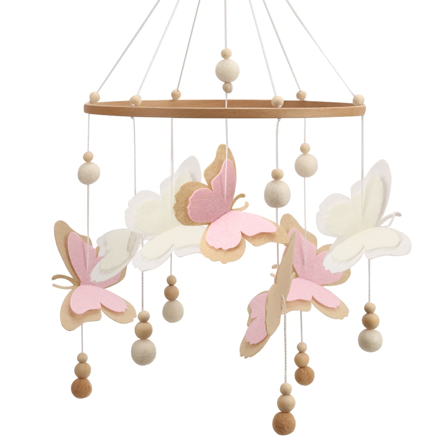 Este móvil de madera y tela es perfecto para la cuna de tu bebé. Con un diseño seguro y resistente, brinda una estimulación visual para el desarrollo sensorial de tu bebé. Disfruta de la tranquilidad y comodidad de ver a tu bebé entretenido con este móvil de cuna.