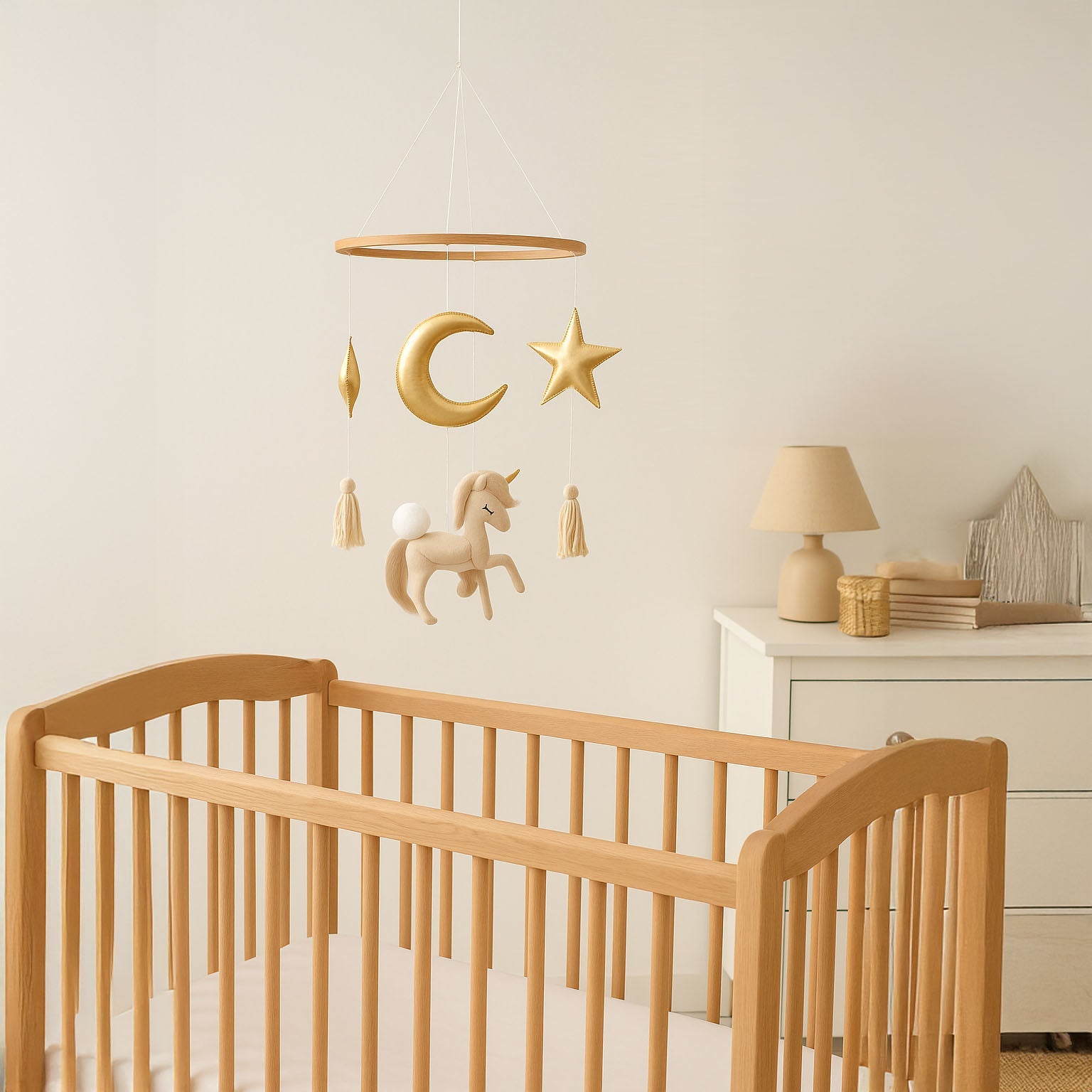 Este móvil de madera y tela es perfecto para la cuna de tu bebé. Con un diseño seguro y resistente, brinda una estimulación visual para el desarrollo sensorial de tu bebé. Disfruta de la tranquilidad y comodidad de ver a tu bebé entretenido con este móvil de cuna.